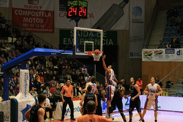 Tiempo muerto de Estudiantes, tras la salida en tromba del Obradoiro: 10 - 0 en 2 minutos y medio de partido.