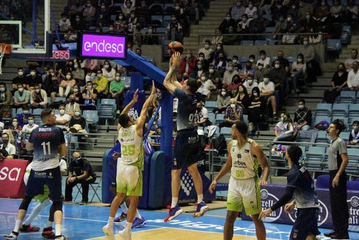 O Urbas consegue rebotear en ataque, e agora é Alex López o que se levanta para lanzar, caendolle enriba Okouo.